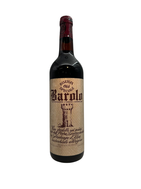 Deze Barolo uit 1966 is een echte Piemontese schat. Het presenteert complexe aroma's van gedroogd fruit, leer en een licht kruidig ​​palet, aangevuld met een aanhoudende nasmaak van tabak en chocolade. Met zijn rijke structuur en zijdezachte tannines biedt deze wijn een harmonieus evenwicht, waardoor hij ideaal is voor speciale gelegenheden.