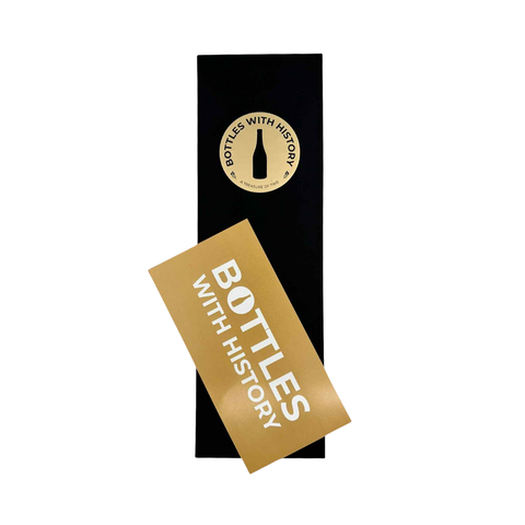Komplettera presentupplevelsen med vår exklusiva svarta presentförpackning och matchande gratulationskort från Bottles with History. Hälsningskortet skickas också så du har möjlighet att skriva en personlig hälsning till mottagaren, vilket gör gåvan ännu mer betydelsefull. Texten finns på baksidan av presentförpackningen "Fira ögonblick" följt av en suggestiv hälsning som bjuder in mottagaren på en resa genom tiden.
